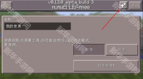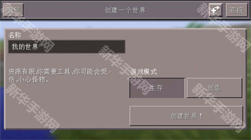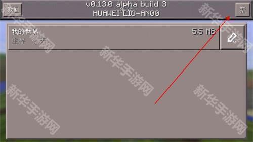 2、点击右上角“新”创建新的世界;