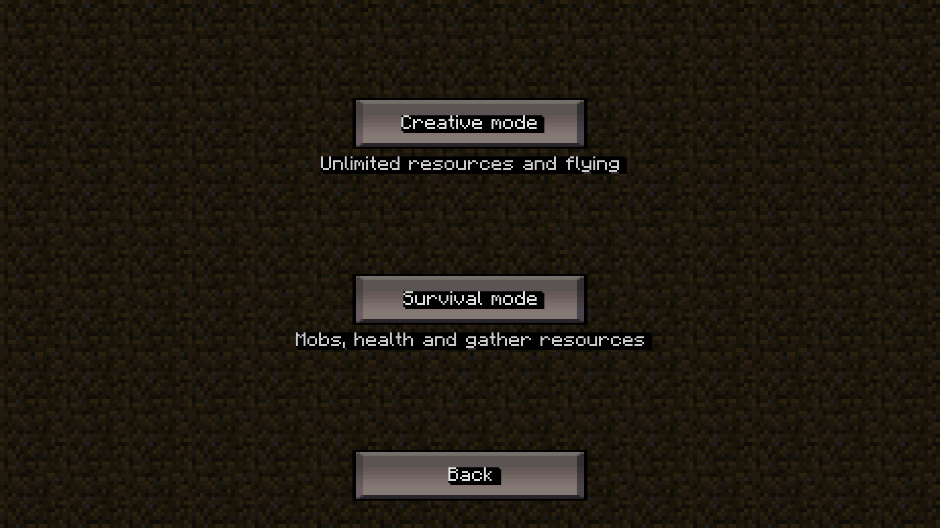 1.此版本首次引入生存模式,并添加了健康和饥饿水平等设置。