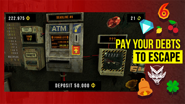 在这款游戏中,玩家将通过游玩老虎机来赚取筹码,并且通过每一轮结束后选择一个道具,来提升自己的运气,好让自己在下一轮挑战中获得更多筹码的倍率。