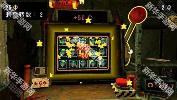 5、玩家需在三轮内赚取目标金币以解锁更高金额档位,否则地板塌陷即游戏结束。每轮可选择投少量硬币获三次拉杆机会,或投双倍硬币获七次拉杆机会,策略选择直接影响后续资源获取。