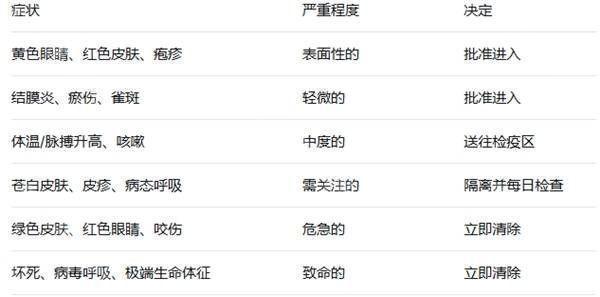 黄色眼睛可以通过检查。结膜炎需要隔离并在第二天进行复查。红色眼睛预示着即将转变为僵尸。