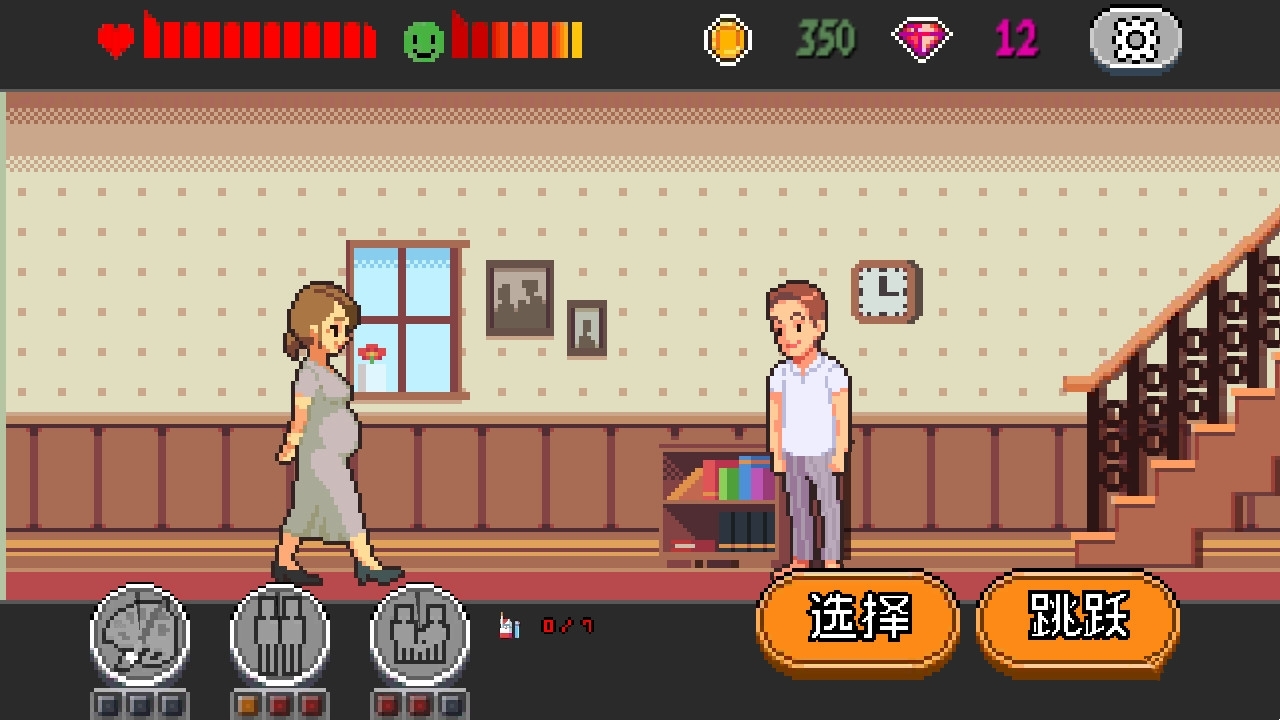6、工作阶段一号!赚钱吧少年!up这是五项全不到九的职员路线,收集钱币赚取工资(商城可增加对应职业单金币收入)每个职业有自己特别的选项,根据你的属性(隐藏)来决定成功与否,是否成为成功人士,值得注意的是赚钱的时候会减幸福度(工作就输了——大老师)小心自杀哦,食物会加幸福度,烟会减少健康度集齐七个香烟即可当场去世,注意规避。