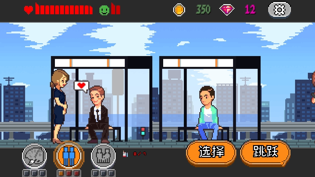 7、工作阶段1结束后会有买花,买车阶段和结婚阶段,买花阶段建议除非事业有成否则买个10块的就行,车的话功能未知,全收集有成就,如果不买车就只能坐公交去见你的另一半了(坐车的时候不能按按钮所以如果前面的选择按钮按慢了那这时侯会被卡掉一次机会)