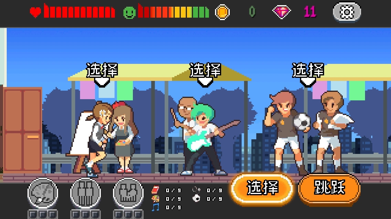 5、校园阶段主要是收集图片下方五个指标,收集够九个就能开启相应职业,两项大于九会在毕业时选择,如果已经有职业目标的话请一定收集本职业的所有图标,以我的游戏经历来说,这个图标数量应该是影响职业生涯的,但是因为每次刷出的图标数量不一样,甚至可能全收集也不到九,所以,,,祝好运