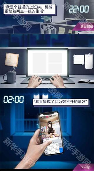 进入游戏后,会有一段背景故事。主角以前只是一个平民,但他有一个做主播公司的梦想。一次偶然的机会中了10w,于是他开始了创业的生涯。