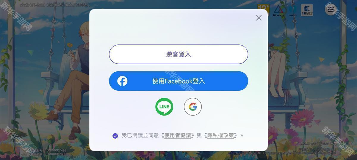 1、如果是新玩家,那么在进入游戏的时候,系统会提示大家注册账号的方式,比较常用的有谷歌游戏、游客登录等。