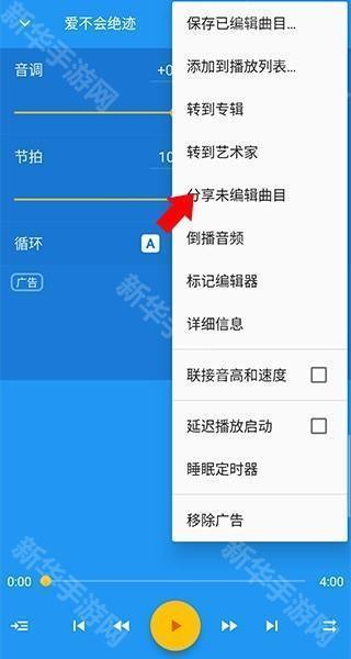 2、在弹出的下拉菜单中选择“分享未编辑曲目”。