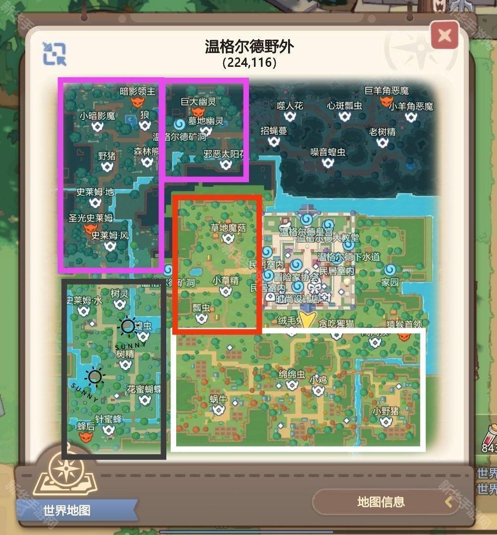 框是采集点范围,黑色太阳标记是钓鱼点。
