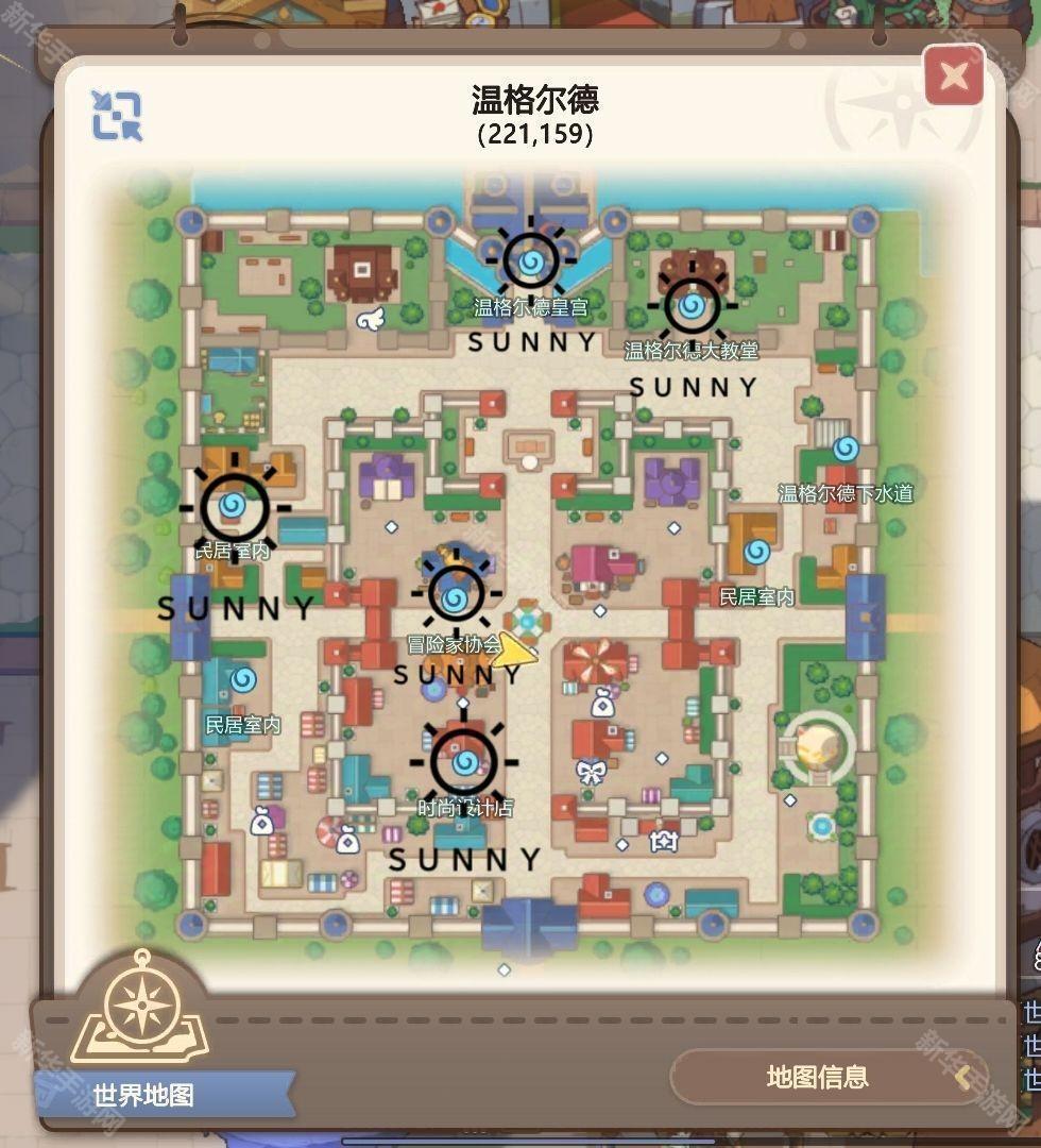 部分 npc 在黑色太阳标记的建筑里,冒险家协会二楼还有一个。