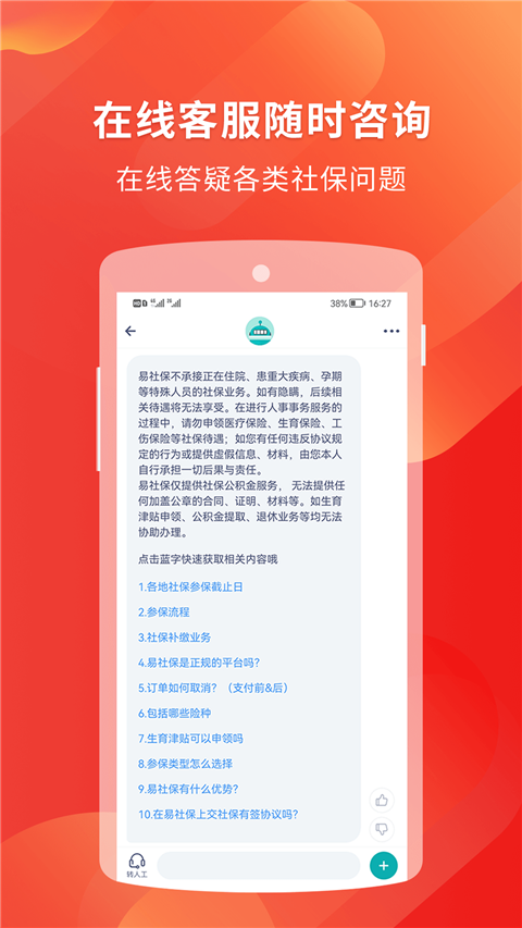 易社保实时更新全国各地五险一金政策资讯,让用户掌控最新社保动态。用户可以意见查询自己的每月参保订单、明细。当出现忘记缴纳社保情况是软件还会自动提醒用户。