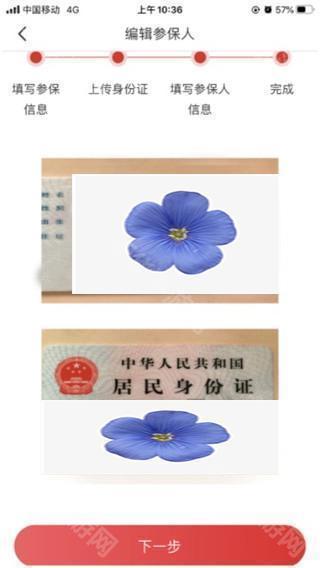 6、上传参保人身份证正反面照片,上传成功点击【下一步】;