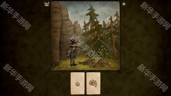 所有角色和道具以卡牌形式存在,通过拖拽卡牌与场景中的NPC或物体互动,推动剧情发展。