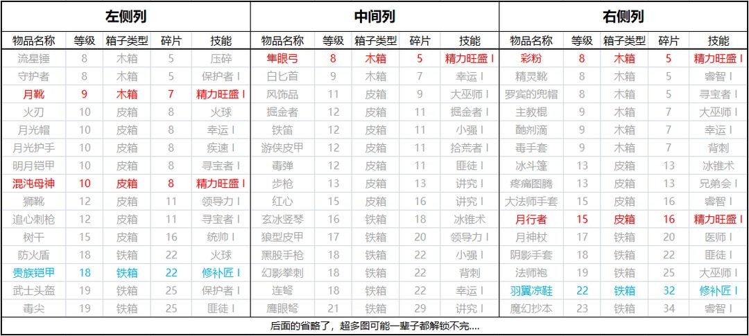 第二种是宝箱图,就是在箱子里开出来的图纸,所有宝箱图都带一个技能;