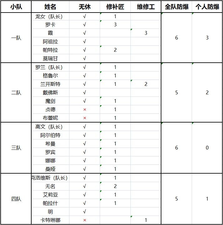 发任务的时候注意下防爆名额的分配,做到每个队伍都有 4~5 个修补匠就基本可以保证无损了。