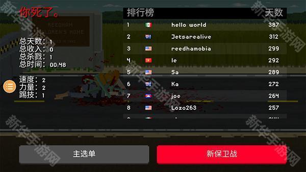 4、如果玩家不及时消灭僵尸,就会被其所消灭,而且在游戏排行榜中将没有玩家的名字