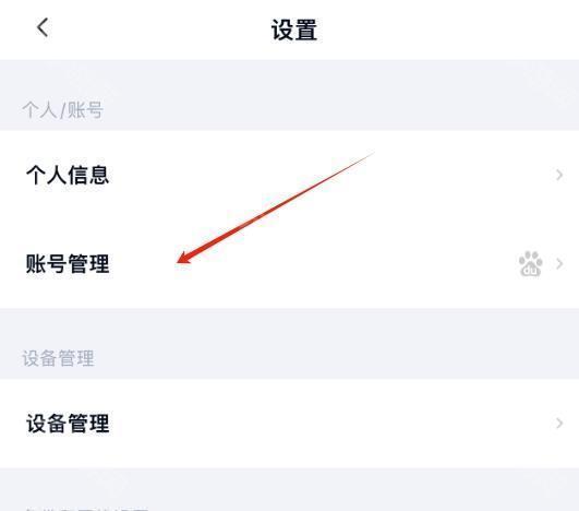 4、在【账号管理】页面中,找到【登录设备】并点击进入