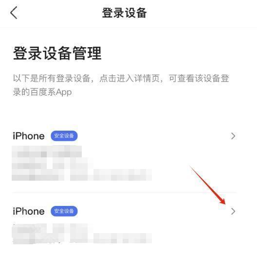 5、进入【登录设备管理】的页面,点击我们想要移除的设备右侧的【>】的选项