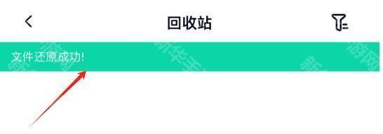5、文件恢复完成后,页面上方会出现【文件还原成功】的提示,这样我们已删除的文件就成功找回了
