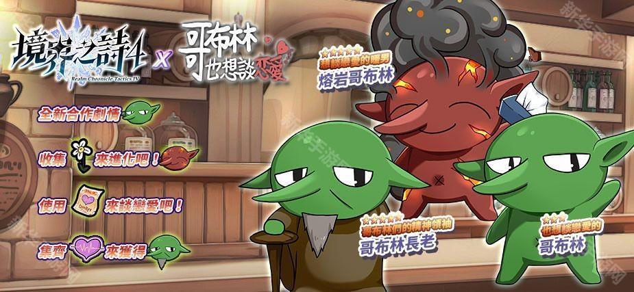 《哥布林也想谈恋爱》中透过採花以及特训来提升哥布林的经验并进化后向不同的女冒险者展开追求,意外穿越来到《境界之诗 Tactics》的哥布林与哥布林长老,即将面对各种喜好不一的女冒险者,甚至将面临残酷的「芋头火锅」心灵考验──通关后可获得魔晶石等珍贵物资外,还可以享受《境界之诗 Tactics》×《哥布林也想谈恋爱》破万字的原创故事!