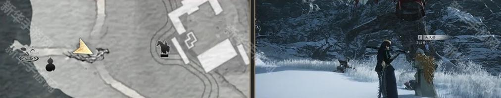 图中位置,湖边挂红线的大树下与吴汉桥对话即可