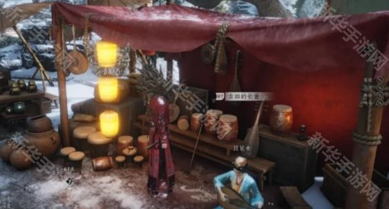 2、对话结束后,前往酒泉镇的图中位置,在琵琶女的旁边找到【古旧的长箫】