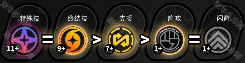 特殊技(11+)>终结技(9+)>支援(7+)>普攻(1+)=闪避(1+)