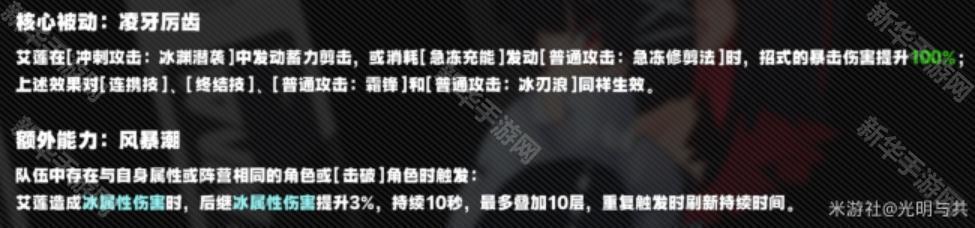 额外能力中则新增了【击破】队友可触发,艾莲适配队友范围得到提升。