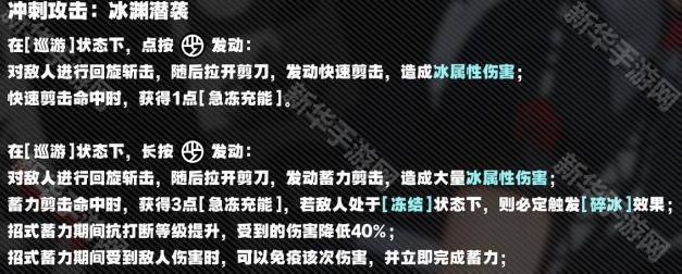 4、 弹反/连携技/大招后,直接普攻是无法打【冰刃浪】的,建议要么蓄力剪,要么用强化特殊技启动。
