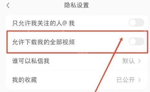 4、在【隐私设置】的页面中,点击取消【允许下载我的全部视频】的按钮即可