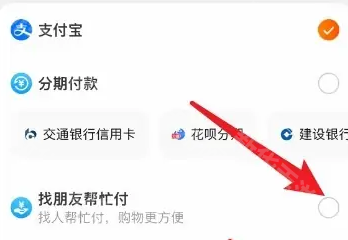2、在订单页面中,下拉找到订单的支付方式,勾选【找朋友帮忙付】,并点击提交订单