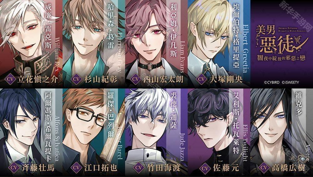 《美男恶徒》以「暗夜中的邪恶之恋」作为主题,特别邀请九位日本人气实力派声优参与,为九位风格迥异的「恶徒男主角」献声,打造沉浸式恋爱体验,让玩家彷彿身歷其境!