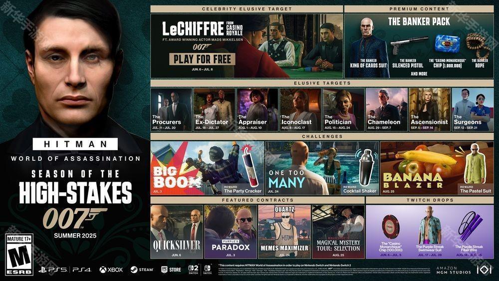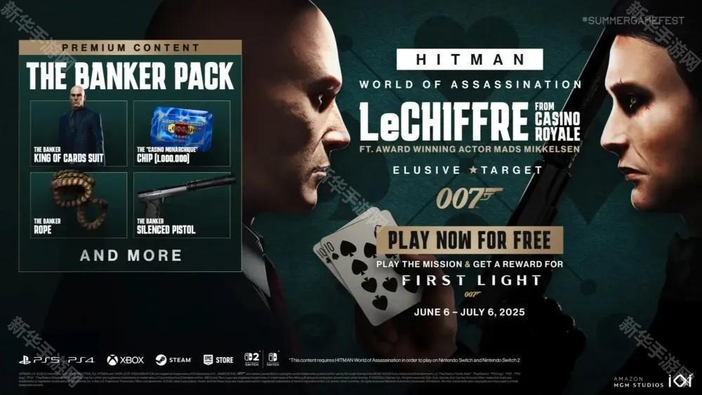 《杀手47:World of Assasinate》将迎来全新限时目标,来自 2006 年电影《007 首部曲:皇家夜总会》的反派角色 ── 银行家兼恐怖分子融资人勒・契夫轲(Le Chiffre),由丹麦演员迈兹・米克森(Mads Mikkelsen)亲自回归配音与诠释。