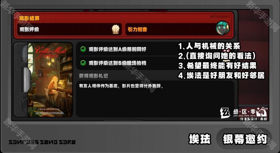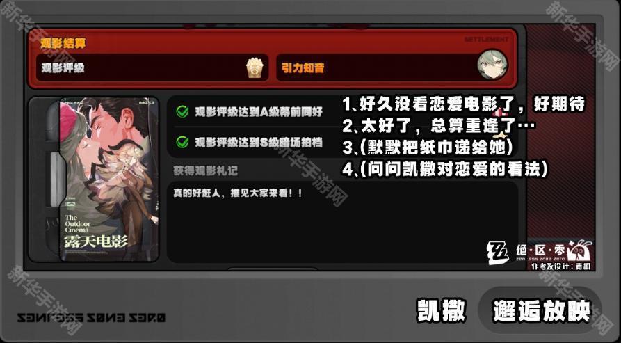 绝区零缘于引力的邂逅第一天怎么选?缘于引力的邂逅是绝区零2.0周年版本的特别活动,活动期间我们可以邀请朋友一同前往引力电影院观看电影并进行评级,在观看过程中还要选择不同的对话选项来获取相应的奖励,接下来就和小编一起来看看绝区零缘于引力的邂逅第一天活动攻略吧。