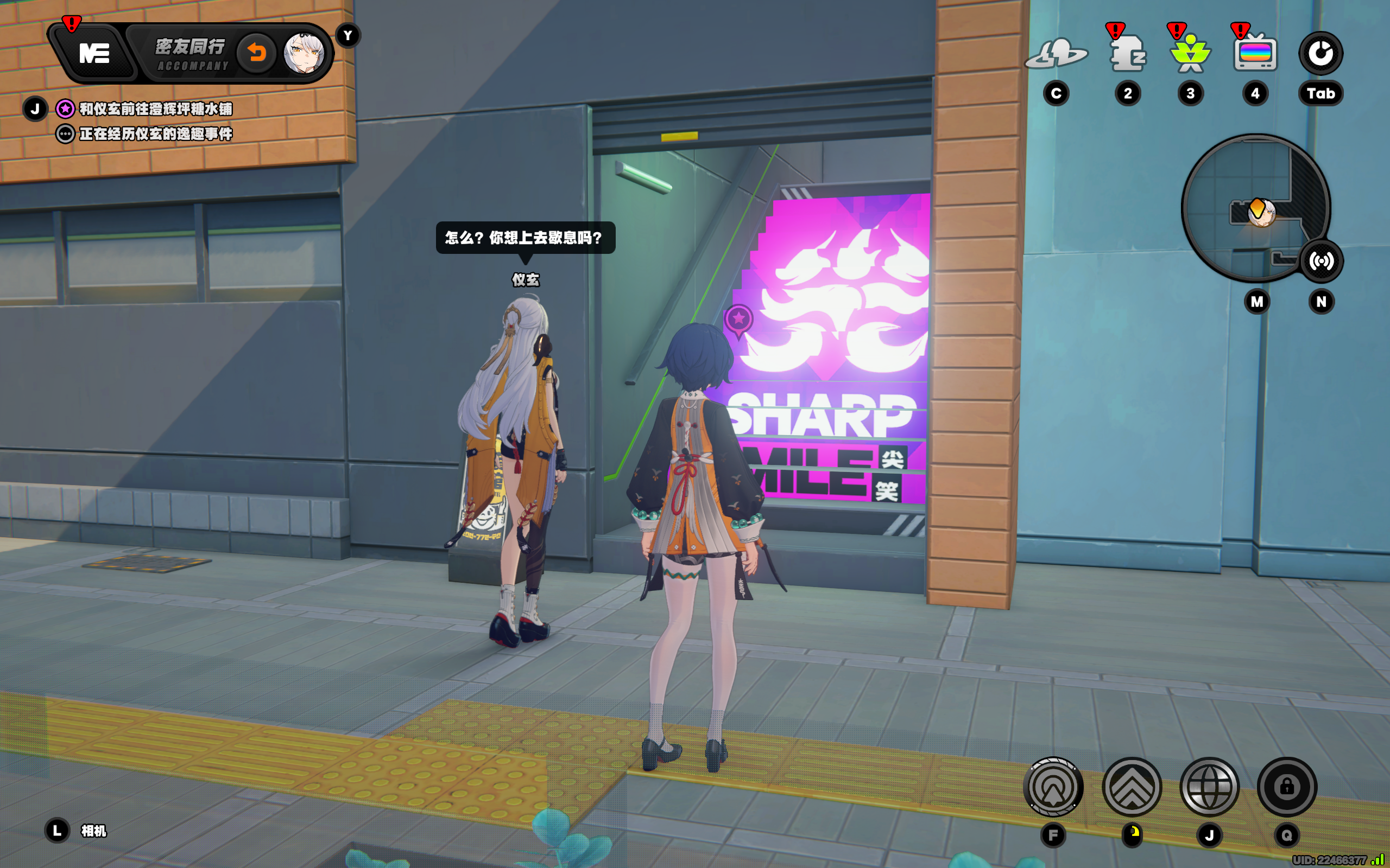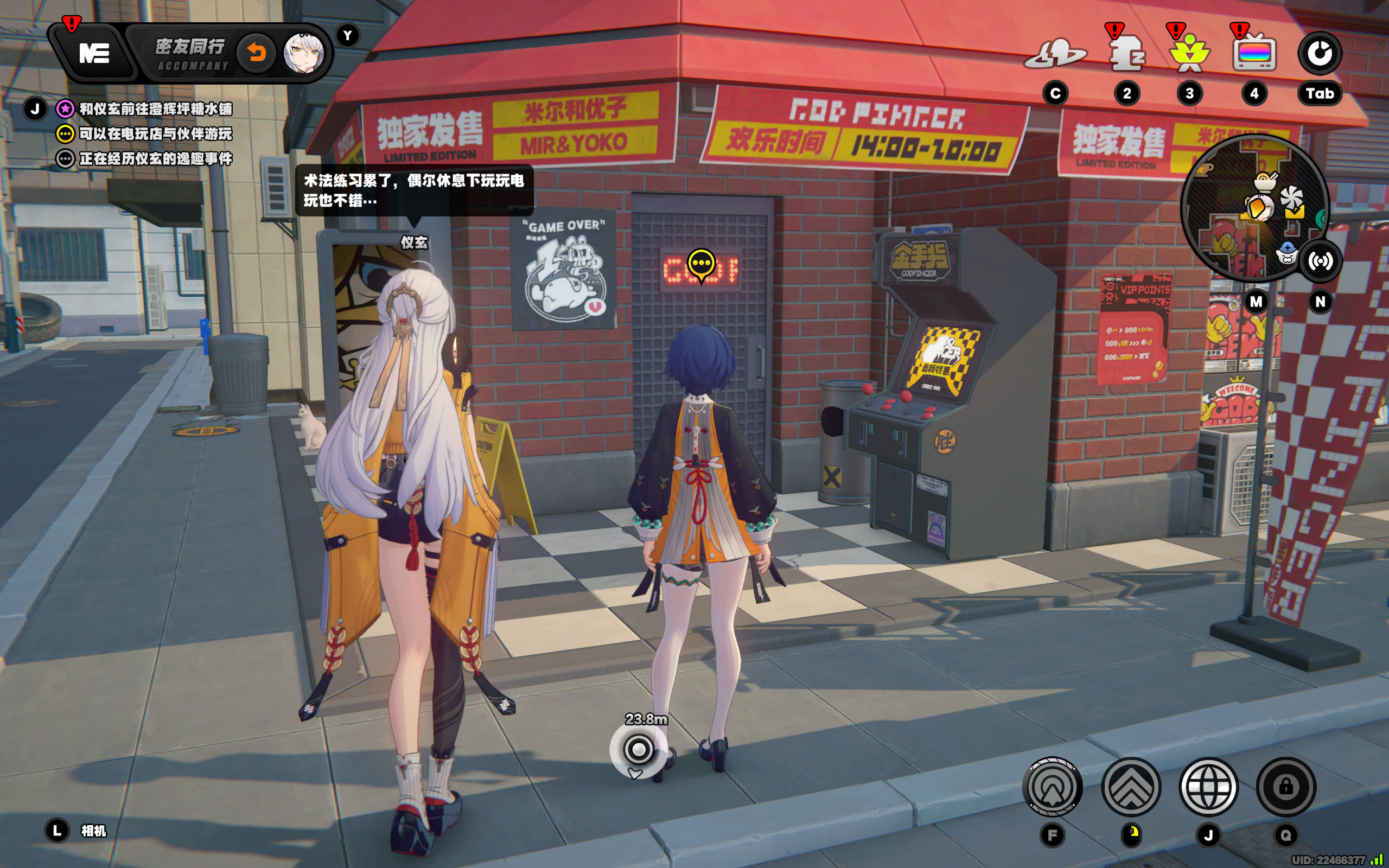 传送到六分街-电玩店,原地等待或走近