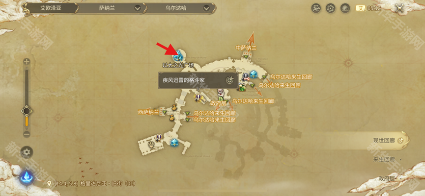 2、如果已经选择了其他职业作为初始职业,也可以在完成主线任务【海之都与森之都】后,在沙之都乌尔达哈·现世回廊的格斗家行会进行转职。