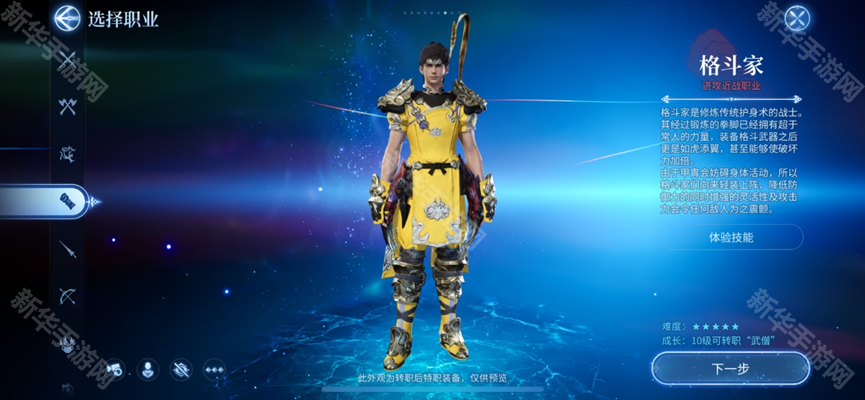 1、武僧转职前是格斗家,所以我们想要以武僧开始游戏的话,在创建角色时候可以选择格斗家;