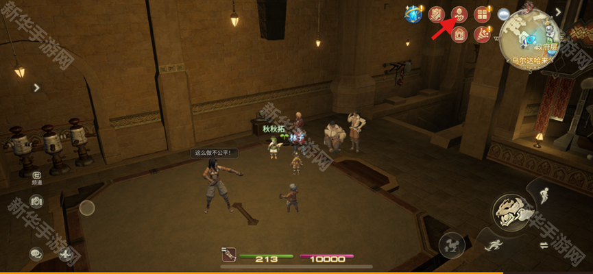 1、在角色界面可以查看【格斗家行会】的位置,点击以太之光广场的大水晶进行快速传送。