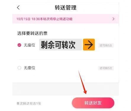 3、进入【转送管理】的页面,选择要转送的票和好友,点击右下方的【转送好友】按钮