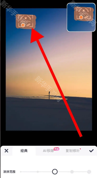 4、涂抹照片中水印部分,app会自动运算并消除涂抹部分的水印