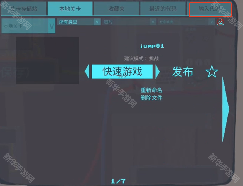 3、打开关卡编辑器后点击右上角的输入代码,将地图代码输入后就会生成这个关卡