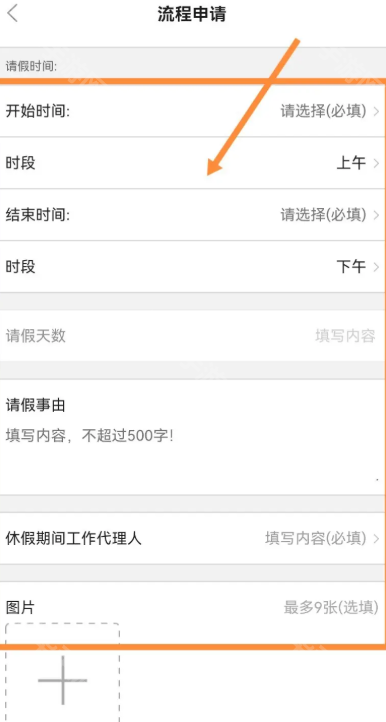 3、最后来到流程申请页面,根据指引填写信息后提交即可