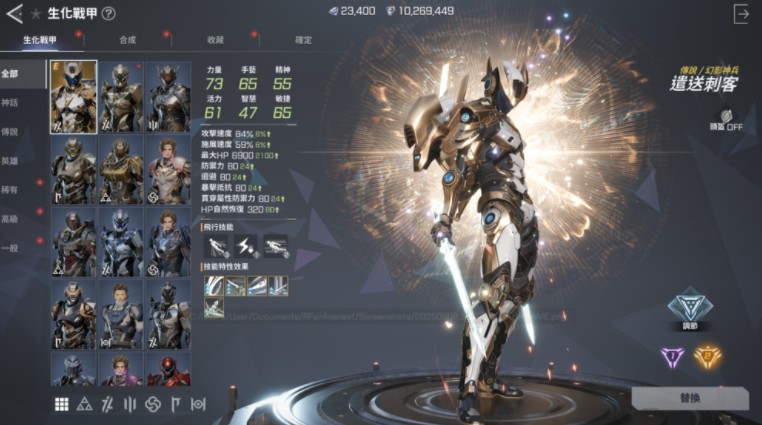 玩家们可以在游戏中自由切换 6 种不同种类的「生化战甲」,玩家们可以想像成可以任意切换职业。并在转换后技能、装备都会保留,让玩家们可以根据任务甚至是战场的需求进行更换。