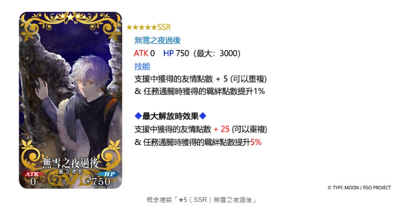 此外,日后将在剧情卡池中追加的 3 种概念礼装「★4(SR)空白的男人」、「★4(SR)天生的捕食者」、「★4(SR)雾中情景」也将先行登场。