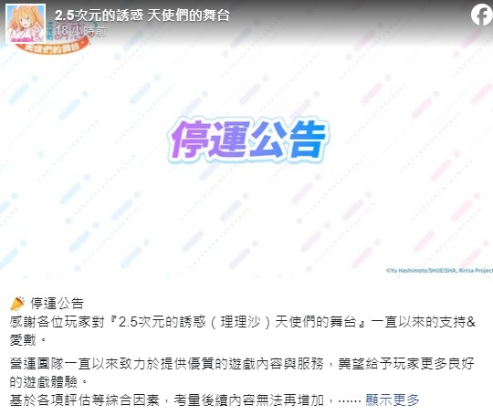 《2.5次元的诱惑 天使们的舞台》宣布变更营运体制 繁中版将于2026年1月14日结束营运
