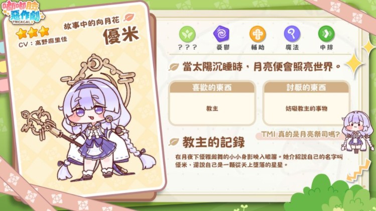 作为国际伺服器的专属角色,优米的强度有目共睹。作为忧鬱性格的艾尔丁辅助角色,优米不仅可以降低敌方攻击力,甚至还可以替友军角色恢复 SP 以及给予敌军角色减少 SP 的效果。