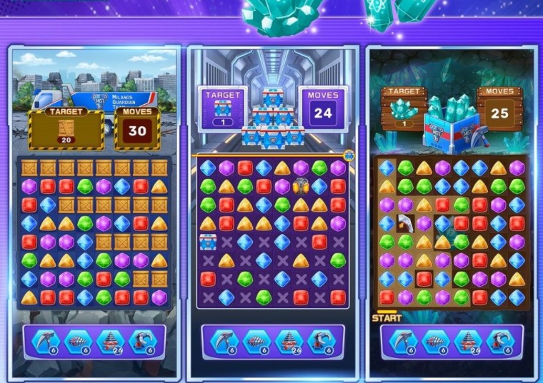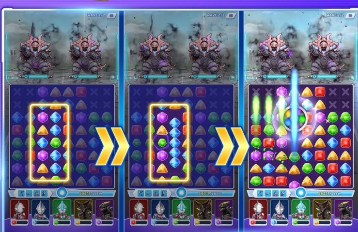 《超人力霸王拼图 Shuwatch!!》除了一般的三消益智游戏外,还充满以各种规则进行的益智游戏,像是限制图案移动的次数、限制移动起点等等。
