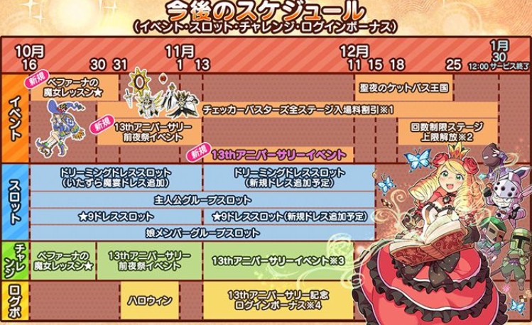 根据官方公告,10 月 30 日起,游戏内仍将举办一系列庆祝13周年的活动,活动期间将在每日发放转蛋券,同时也会有全新的道具与关卡登场。