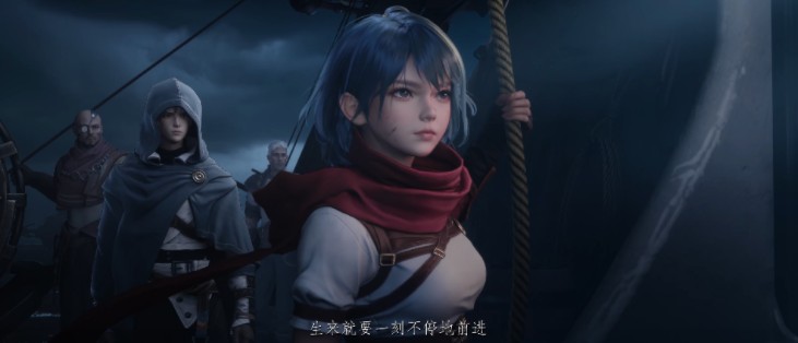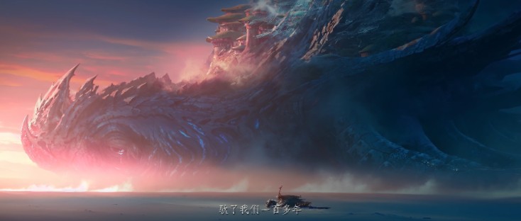 PV开篇,百岁高龄的巨兽带着临终的泪水沉入白沙,在它的背上还能看到完整了人类建筑。失去家园的人们目送「隆舶」被流沙带走,也意味着他们要在一片白茫茫中,开启新的漂泊。