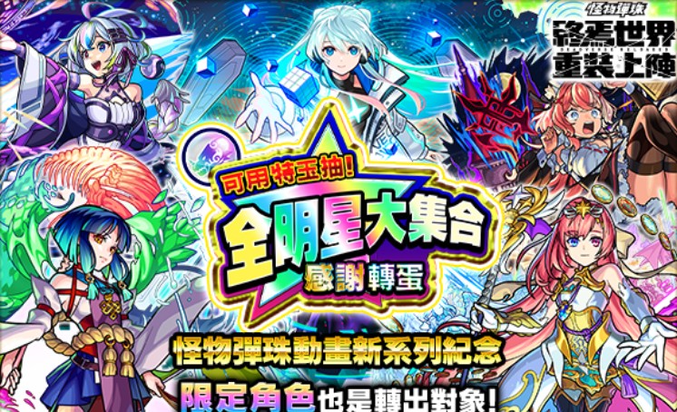 每週动画播放日如果登入,就能得到可抽「可用特玉抽!全明星大集合感谢转蛋」的特玉 1 个作为礼物。1 个「特玉」可单抽 1 次转蛋,限定角色也会有机会转出。每星期皆可得到 1 个特玉,最多总共可以获得 10 个(10 连份)。