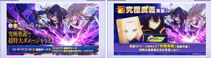 官方表示,《我想成为影之强者!Master of Garden》日版即将在 11 月 29 日迎来发行3周年,为此纪念公开全新游戏主视觉图,并宣布率先自 10 月 30 日推出全新闇影庆典角色【影之双始者】闇影&阿尔法,是名透过究极奥义给予超特大伤害的黄属性输出双人角色,作为首位实装全新技能「究极奥义」于战斗中当究极 SP 条 MAX 即可发动特别奥义并只能使用 1 次。